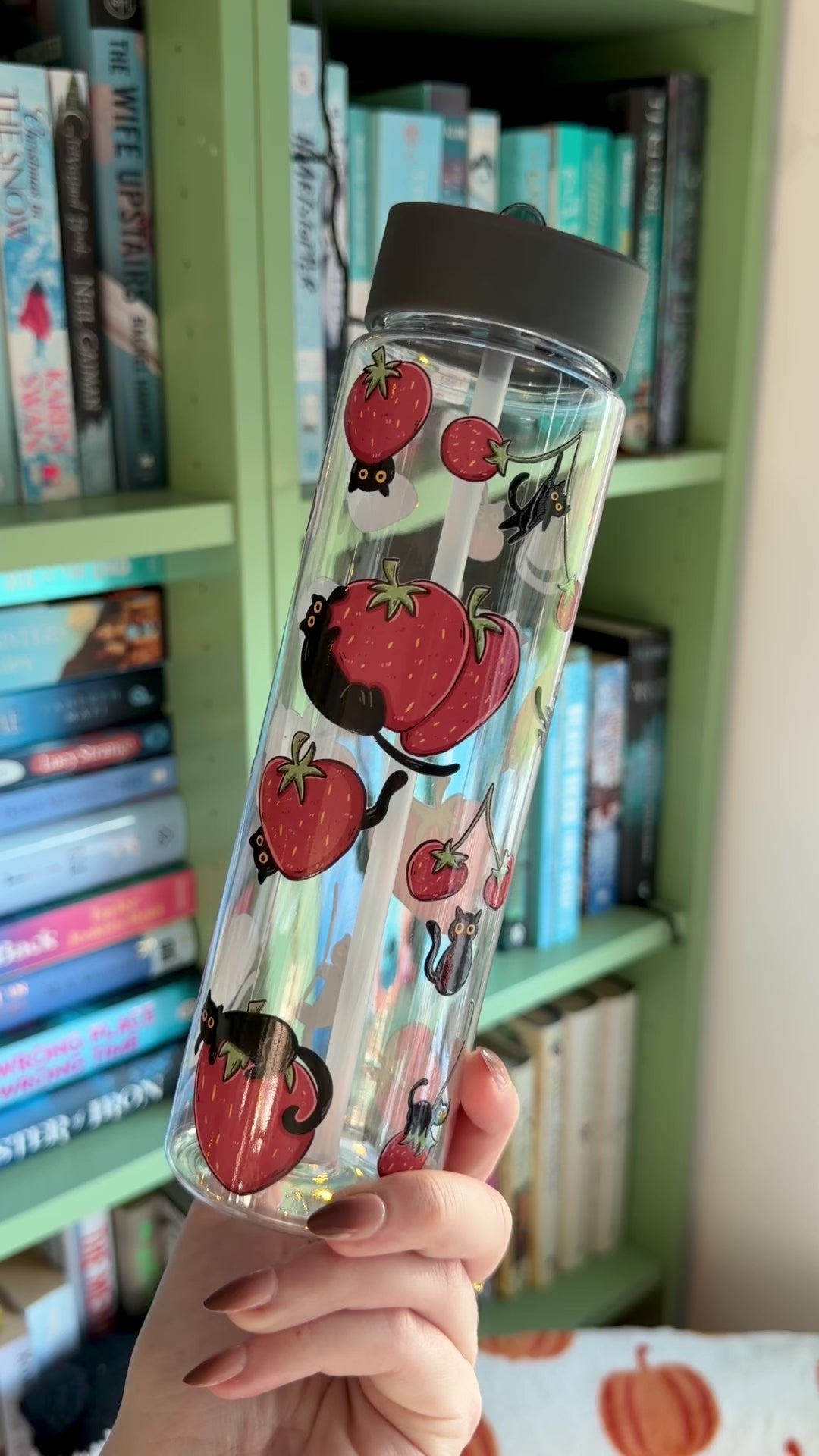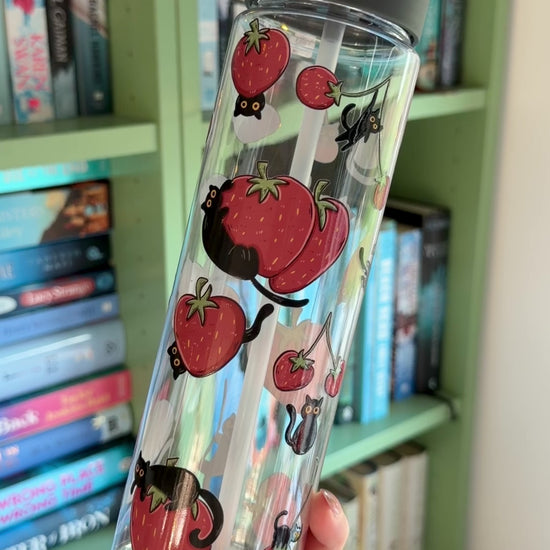 Schwarze Katzen und Erdbeeren Wasserflasche