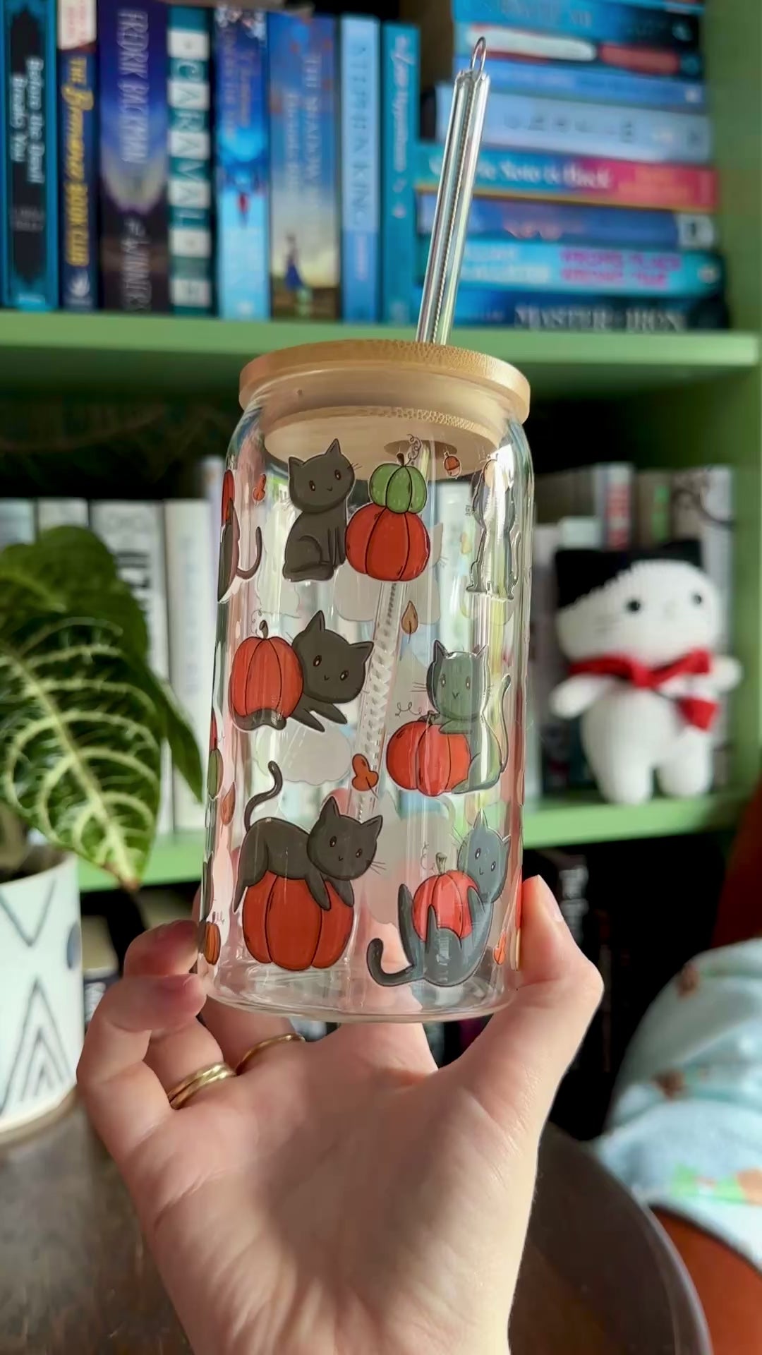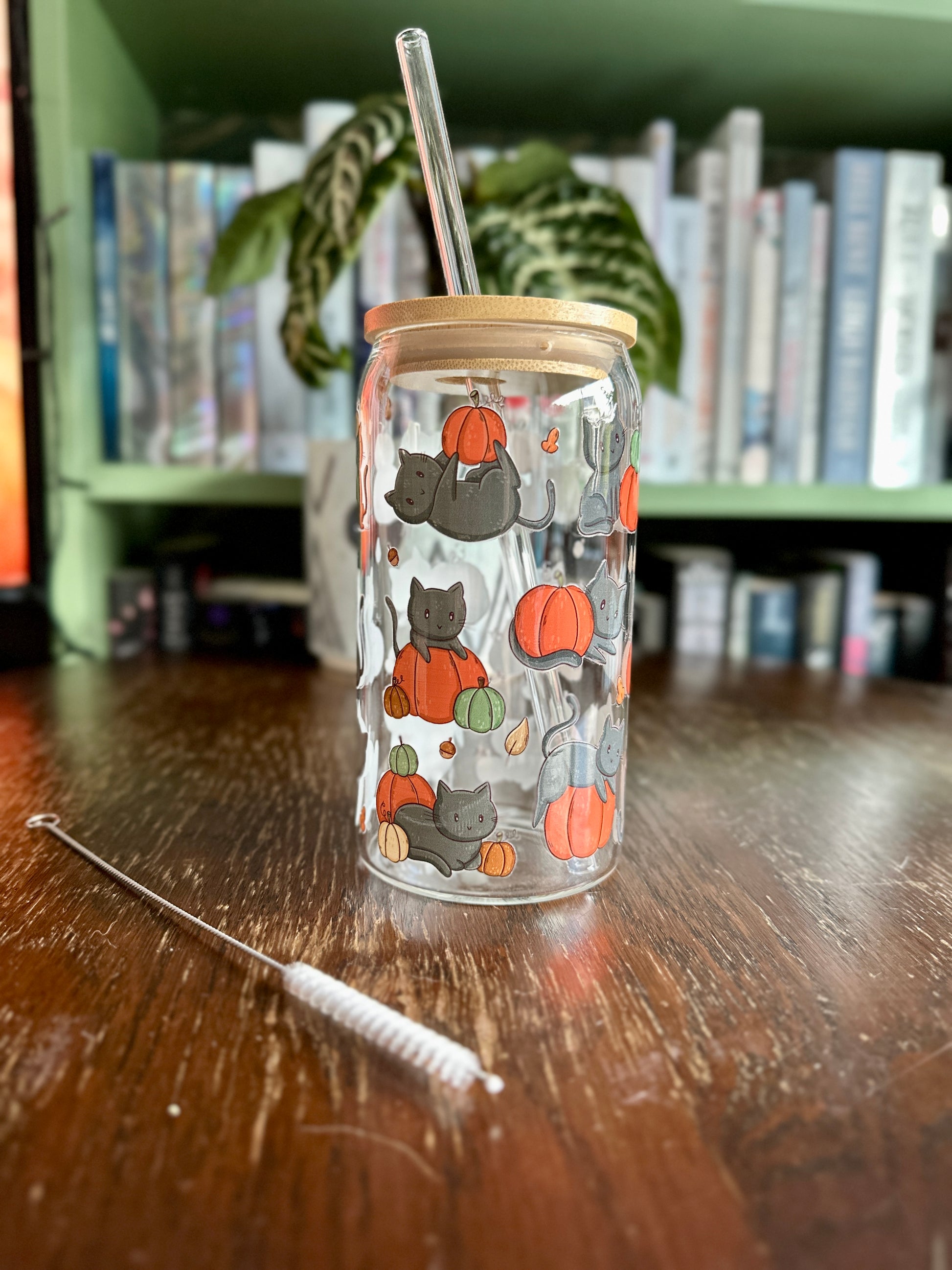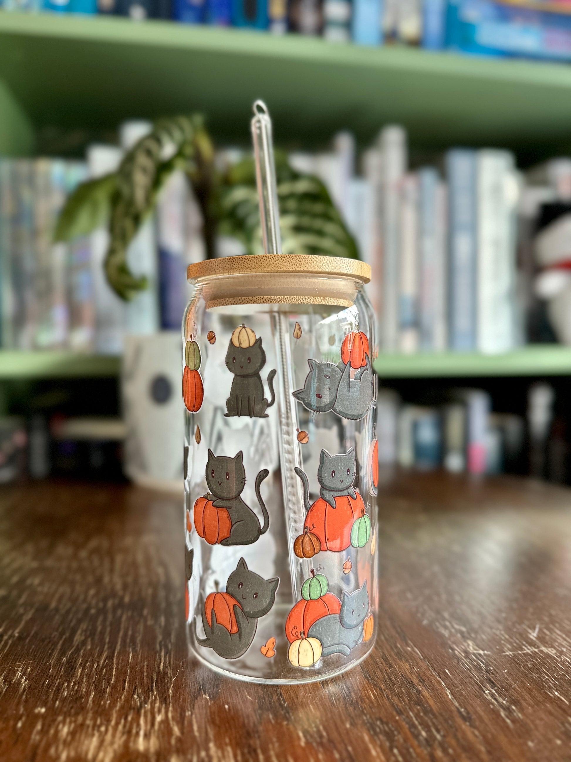 Schwarze Katzen und Kürbisse Glasbecher