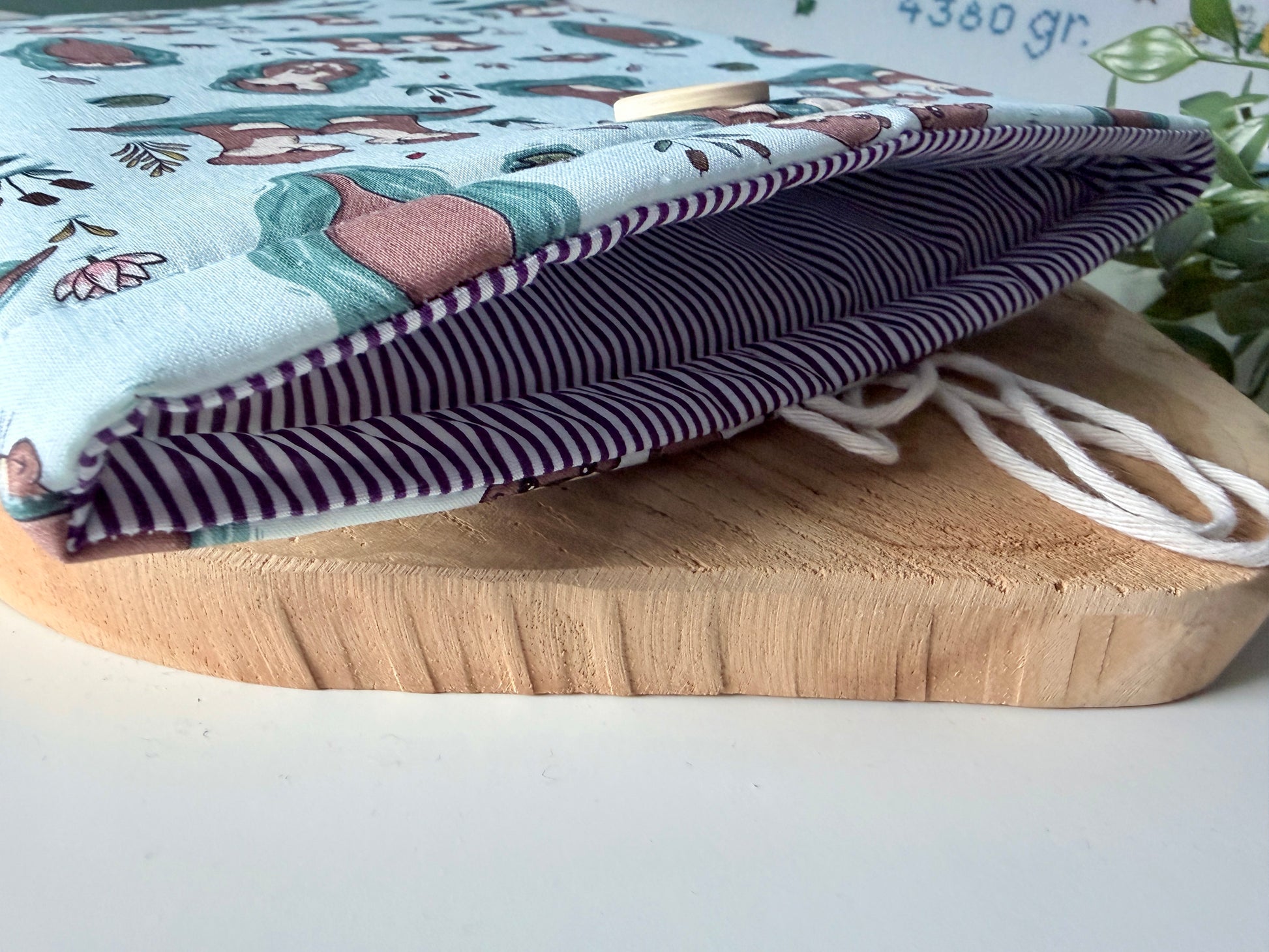 Da alle Hüllen handgefertigt sind, können einige Teile empfindlicher sein als andere Produkte. Wir haften nicht für vom Benutzer verursachte Schäden an Hülle, Knopf oder Schnur.