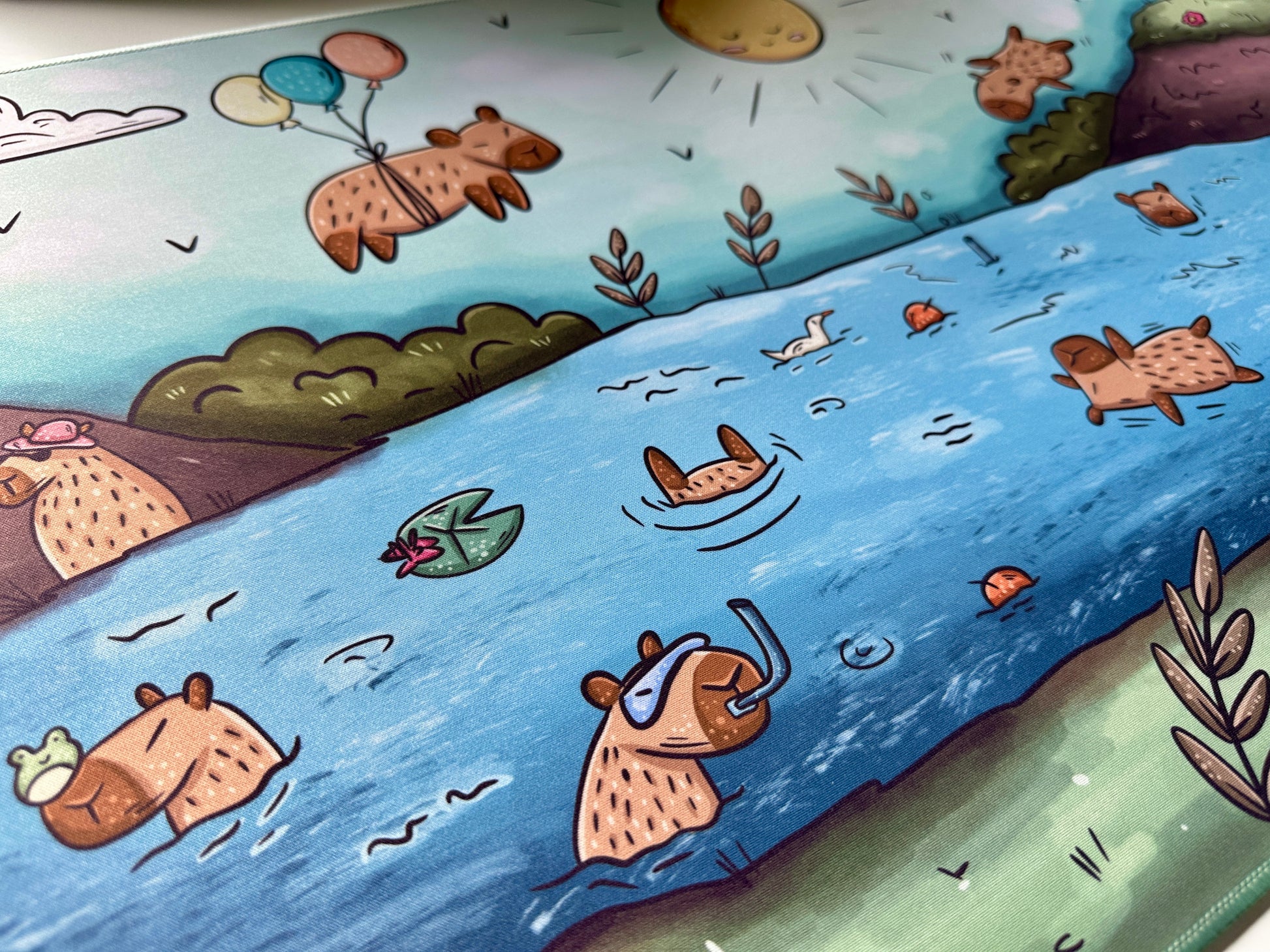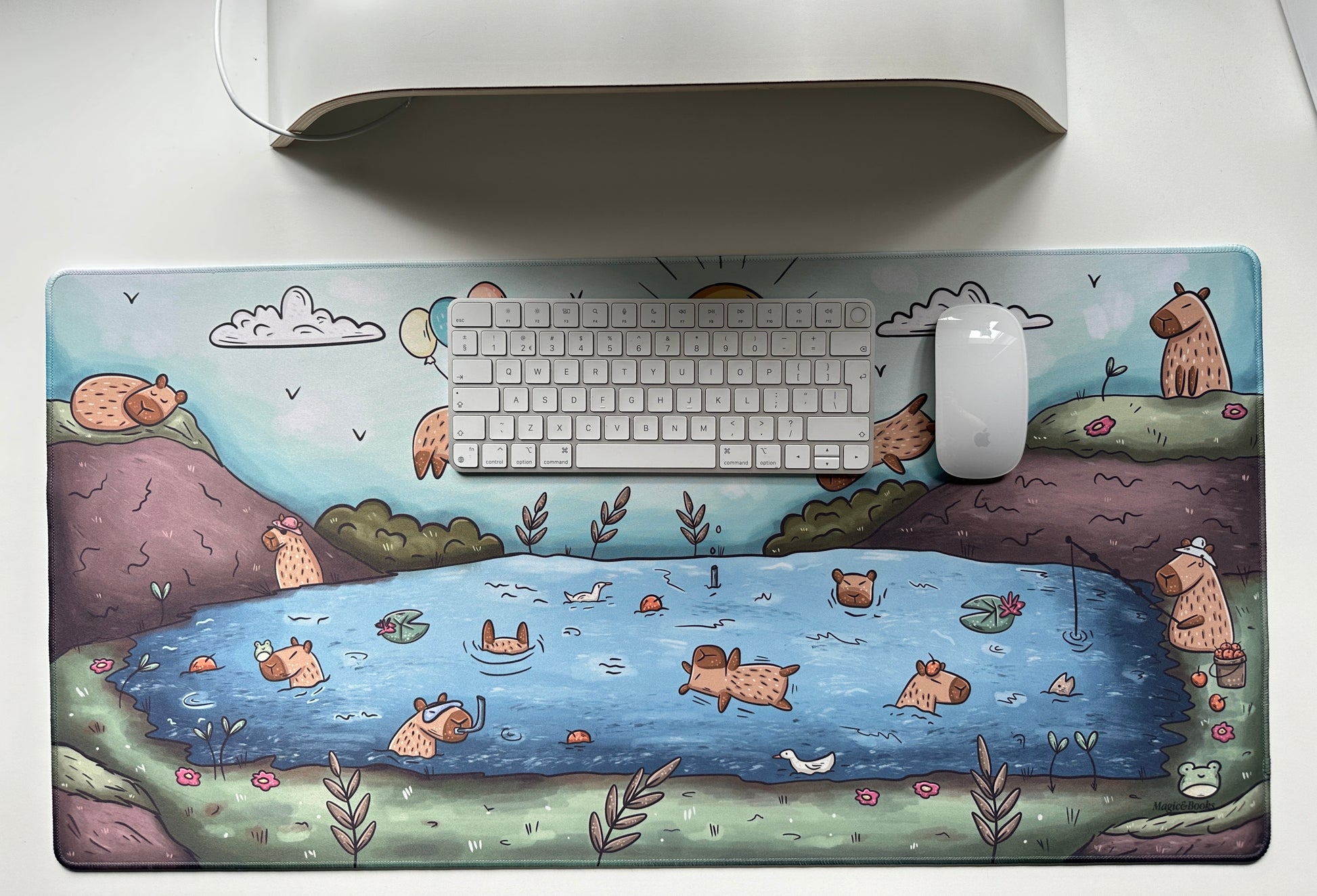 Capybara Lake Party Desk Mat / Gaming Mousepad