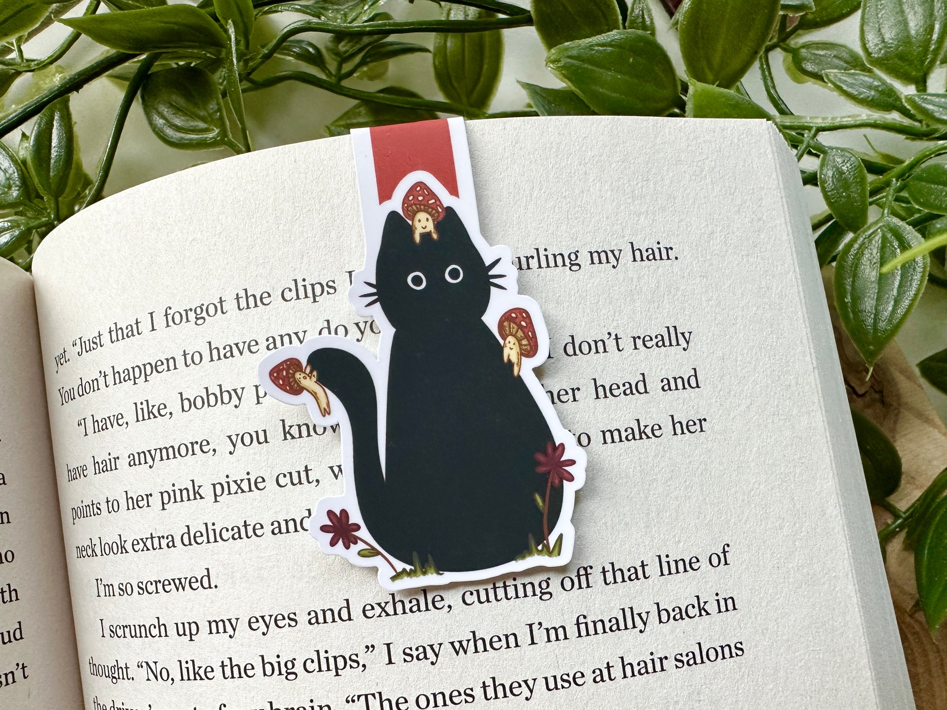 Zwarte Kat met Paddenstoelen Magnetische Boekenlegger