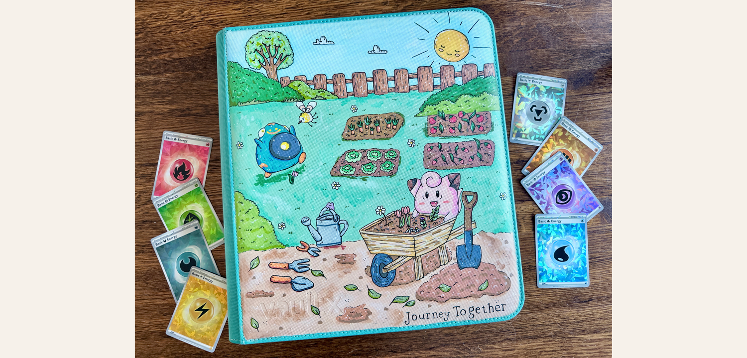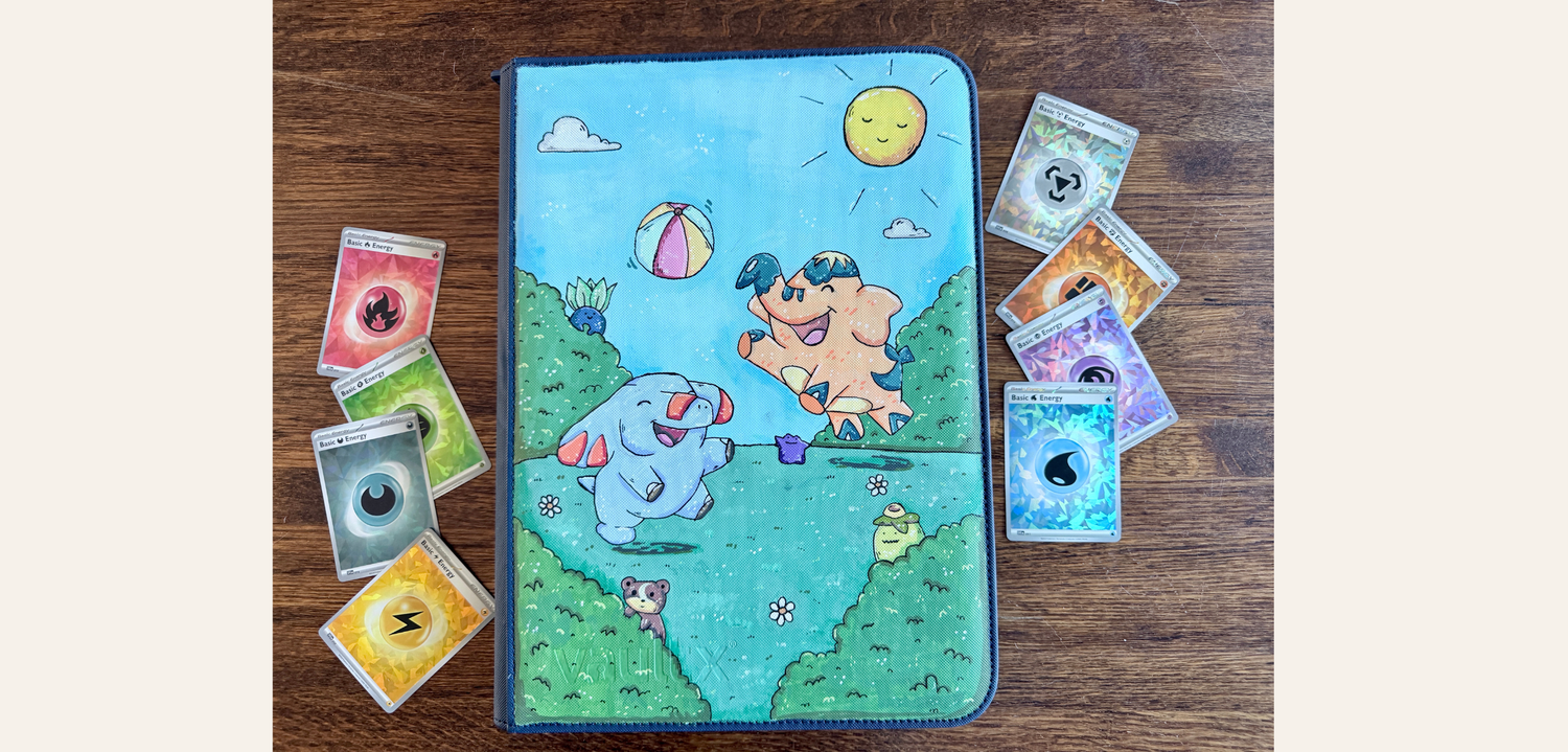 We now accept commissions for custom, hand-painted binders for your trading cards. We will create a one-off design for your binder, completely made according to your wishes. You will receive a digital sketch first, to approve or change. See pictures below of previously made binders! If you are interested, please fill out the form below!